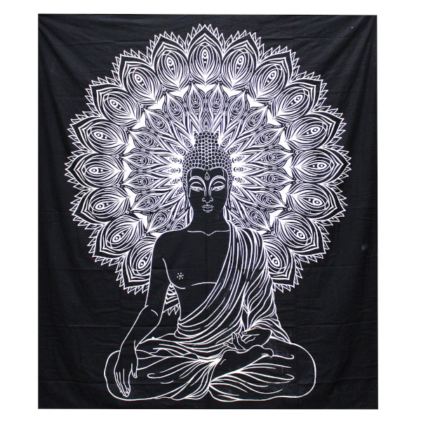 Colcha Doble Algodón B&N + Tapiz – Buda